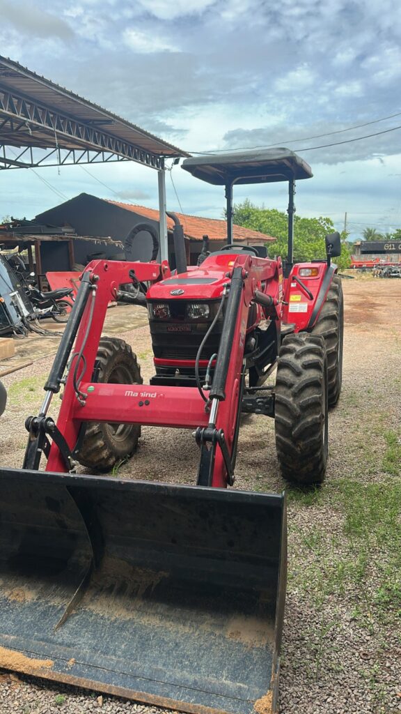 Trator Mahindra 6075, ano 2022, com ótimo estado de conservação e 100% operacional, apresenta conjunto frontal (concha) .