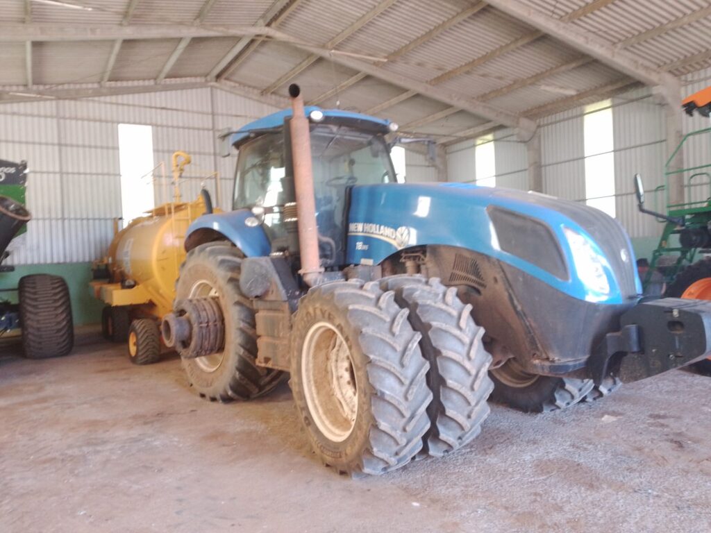 Trator: New Holland T8, ano 2011, Cabinado, 340cv, torque máximo 374cv a 1400rpm, motor FTP Cursor, 6 cilindros, Transmissão automática Full power shift 18X4, GPS, Piloto, Rodado Duplo Dianteiro 480/70R34 e Duplo Traseiro 710/70R42 Radiais, TDP 1000RPM, 03 valvulas de retorno, 4 VCR e Loud Sens, Isobus, vazão 279 l/min, monitor Intelli View IV, acionamento dos braços hidráulicos e TDP nos dois paralamas trazeiros. Individual R$ 720.000,00